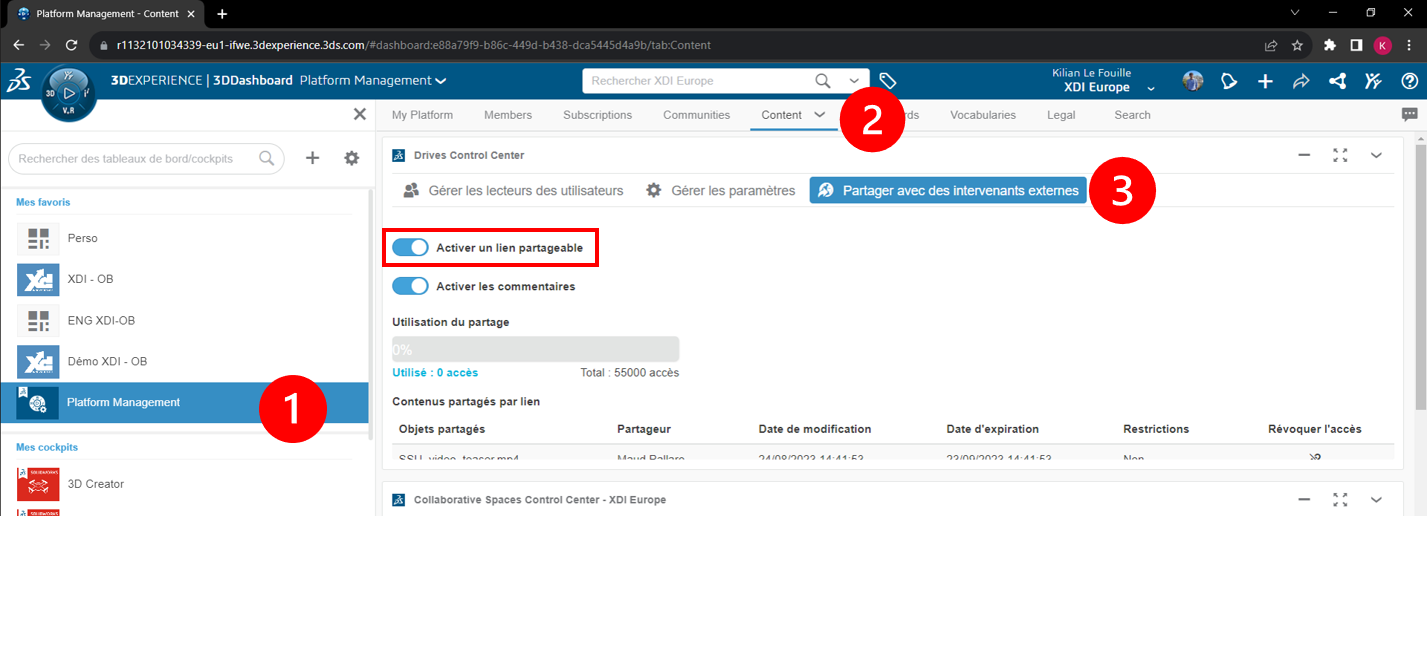 Die erzeugten Freigabelinks werden im Ordner"Extern freigegeben" in der 3DDrive-Anwendung gespeichert.