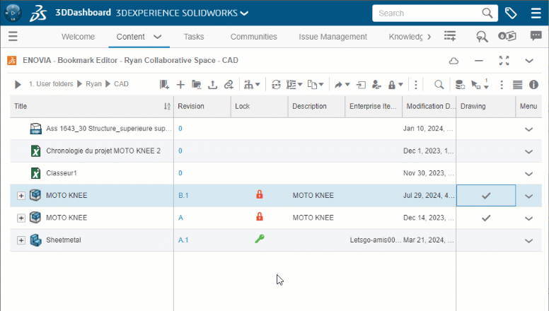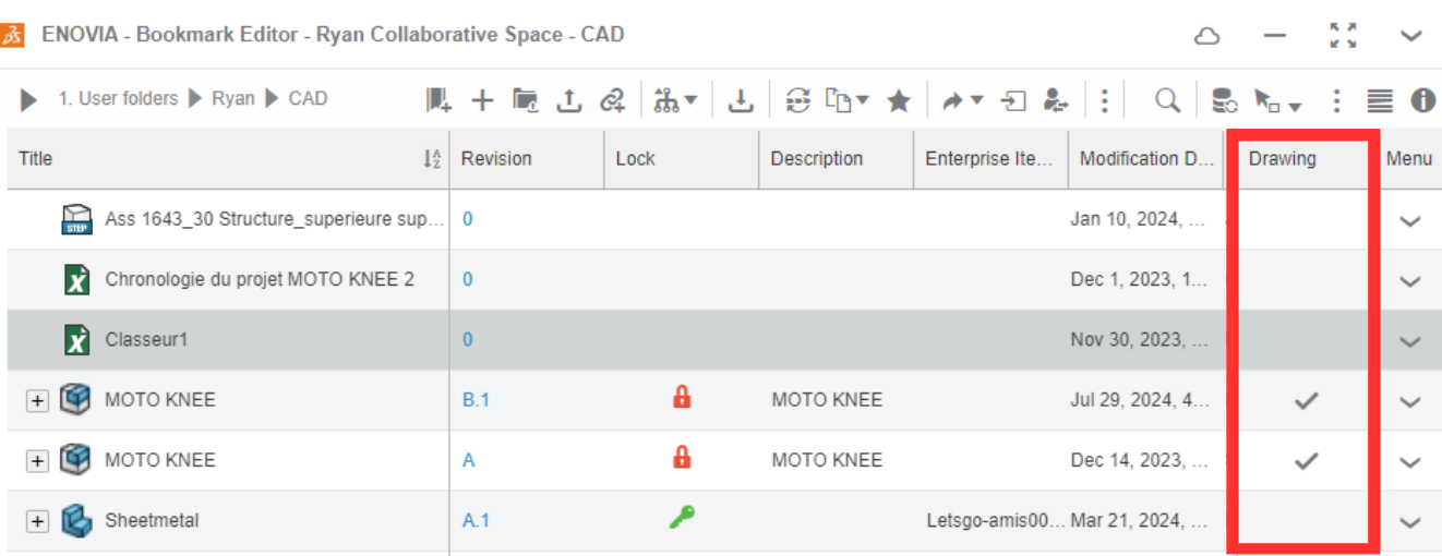 Das Ziel dieses Artikels ist es, eine Spalte"Zeichnung" in Ihre Bookmarks einzufügen, die direkt die Zeichnung anzeigt, die mit Ihrem Teil oder Ihrer Baugruppe verknüpft ist.