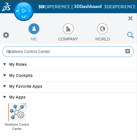 Klicken Sie zunächst auf den Kompass und suchen Sie dann nach der Anwendung"Relations Control Center".