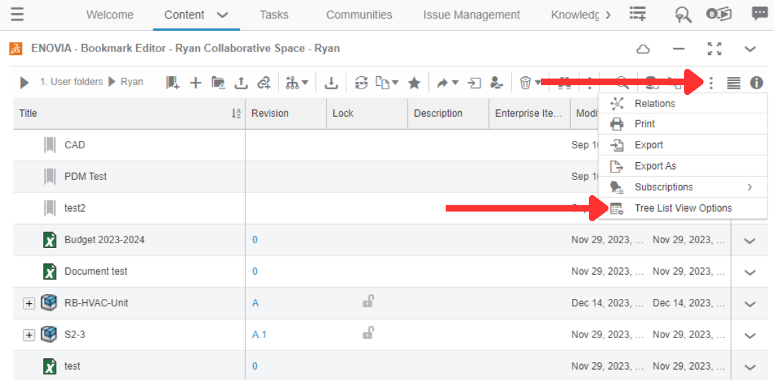 Klicken Sie auf die drei Punkte und dann auf"Tree List View Options".