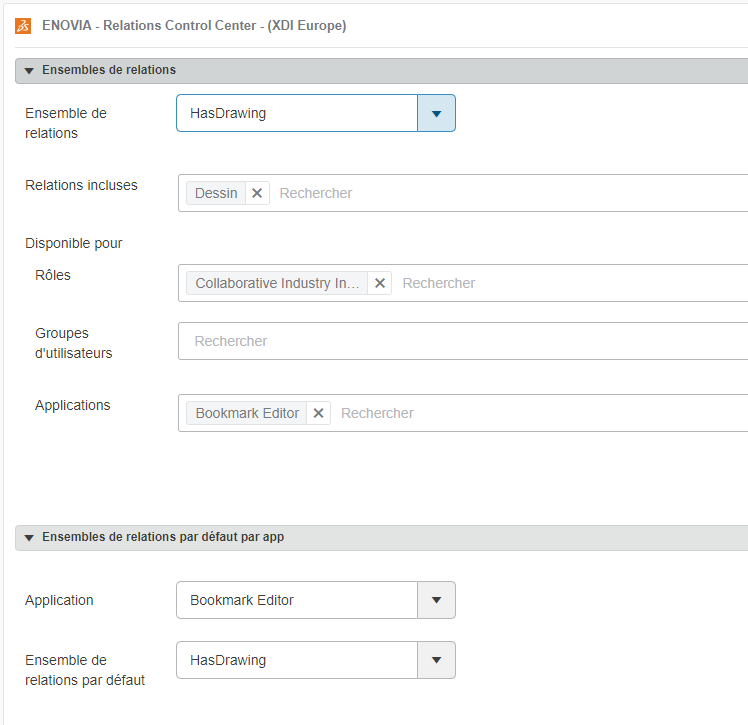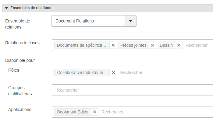 - Wählen Sie im Menü unten auf der Seite aus dem Dropdown-Menü"Anwendung" den"Bookmark Editor " und wählen Sie dann aus dem Dropdown-Menü"Standardbeziehungssatz" die Beziehung, die Sie gerade erstellt haben.