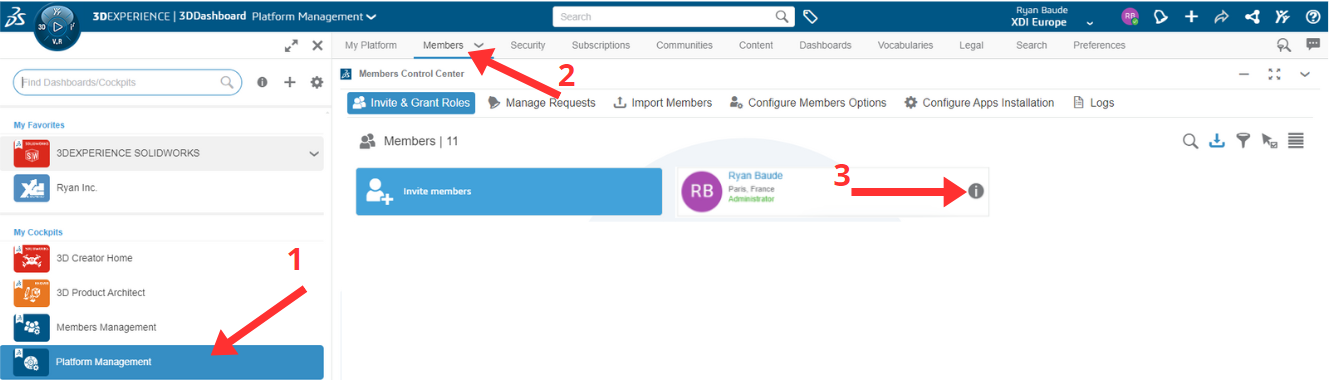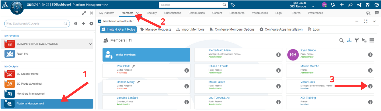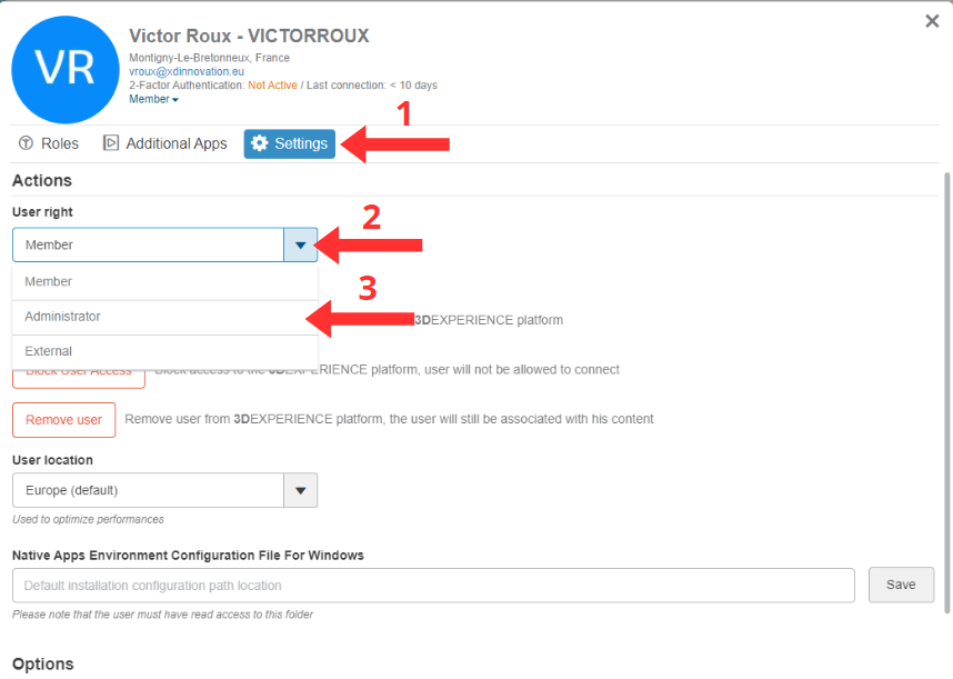 3) Haz clic en la ( i ) junto al perfil de usuario del futuro administrador para acceder a él.