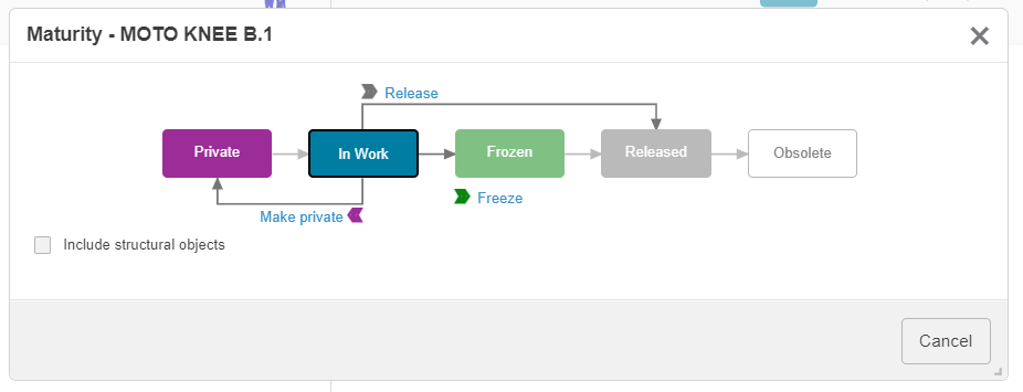 Chaque fichier sauvegardé sur 3DEXPERIENCE possède les états de maturité suivants :