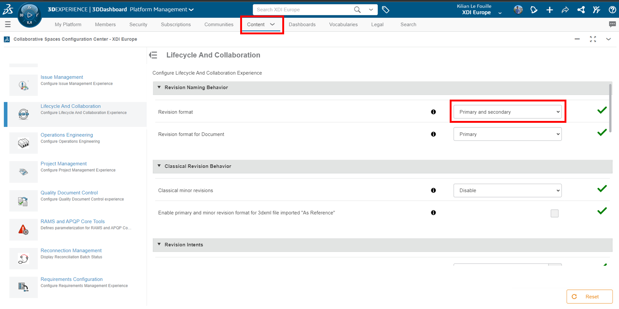 Dans la section "Cycle de vie et collaboration", vous pouvez choisir de n’avoir que des révisions primaires (A, B, C…) ou des révisions primaires et secondaires (A.1, A.2, A.3, B.1…) :
