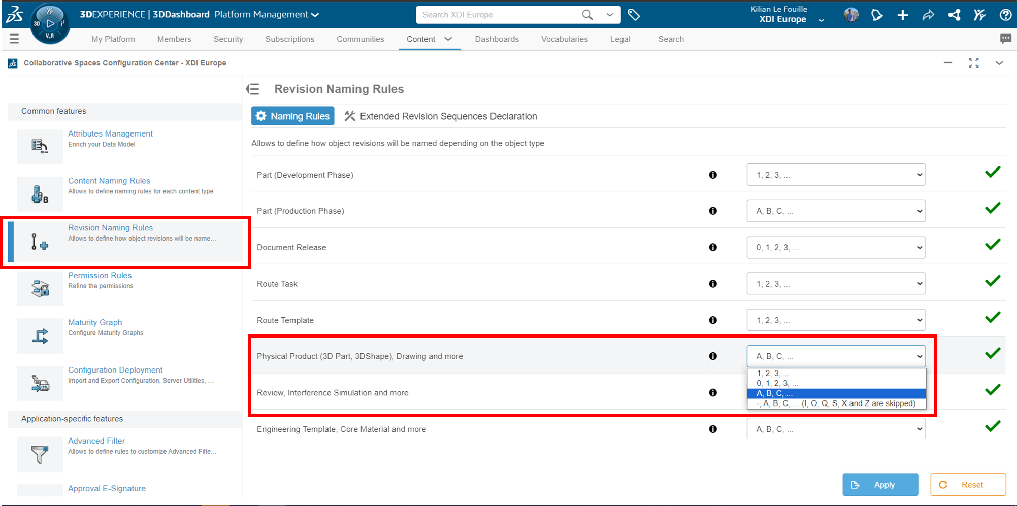 Attention : si un objet est sauvegardé sur la plateforme, son indice de révision ne peut pas être modifié. La modification des paramètres n’affectera que les nouveaux composants.