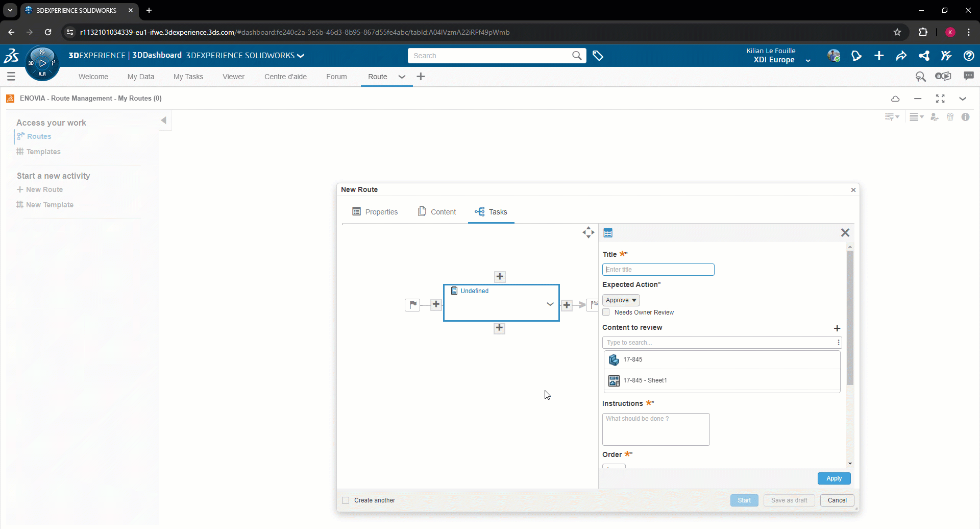 Passo 1: Cria uma rota no 3DEXPERIENCE