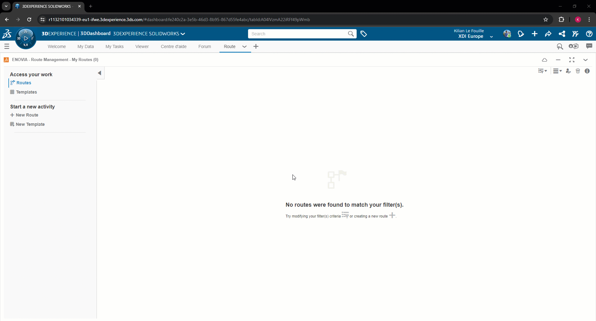 2. Adiciona a aplicaçãoRoute Management ao teu 3DDashboard. Basta arrastá-la e soltá-la em uma nova guia:
