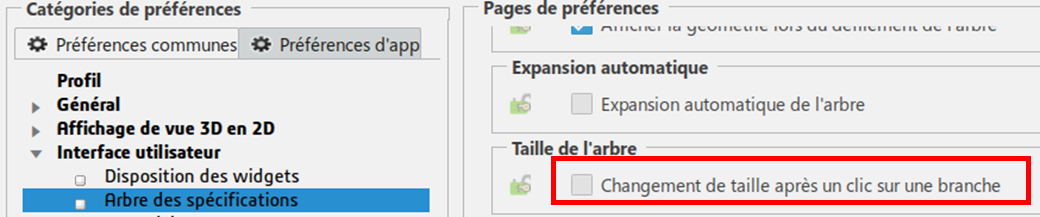 - As secções em que os conjuntos de recursos estão armazenados (painel do lado direito) são apresentadas entre parênteses no painel do lado esquerdo.
