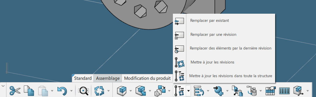 A opção "Atualizar revisões em toda a estrutura" substitui todas as partes pela sua última revisão.